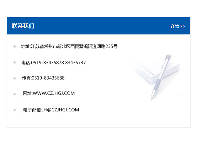 地址:常州市新北區友邦商務大廈1幢16、17層  電話:0519-85101652  傳真:0519-85112595  郵編:213022  網址:www.cz-jiayue_cn.tcfszh.com  郵箱:xiajifengaa@163.com